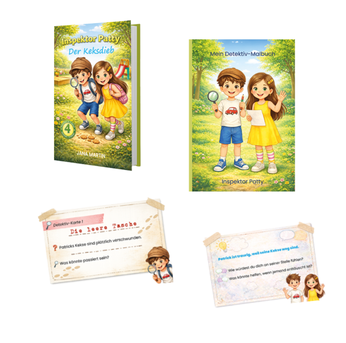 Patrick möchte Detektiv werden. Er liebt es zu rätseln und Spuren zu suchen und plötzlich ergibt sich eine Chance. Ein echter Kriminalfall. Seine heiß geliebten Nusskekse sind aus dem Rucksack verschwunden! Gemeinsam mit seiner besten Freundin Leni wird er zu „Inspektor Patty“ und nimmt die Ermittlungen auf. Es wird geschnüffelt, befragt, kombiniert und schließlich wird dem flauschigen Dieb eine raffinierte Falle gestellt.Ein süßer Krimi für kleine Spürnasen ab 4 Jahren über Freundschaft, Ehrlichkeit und Fairness.
